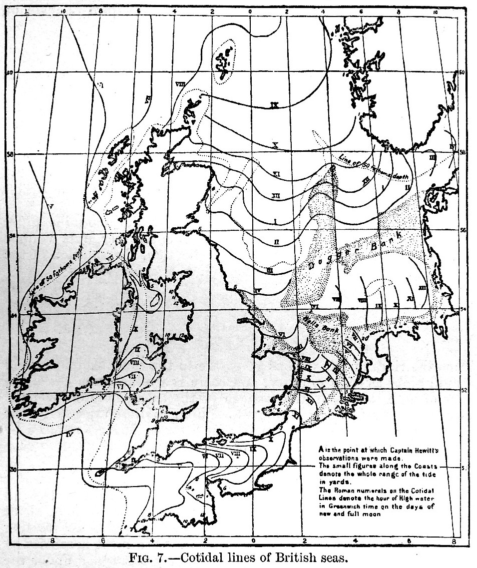 1902 Encyclopedia > Tides > Cotidal Lines of the British Isles (being large version of Fig. 7 of "Tides" article) Tides