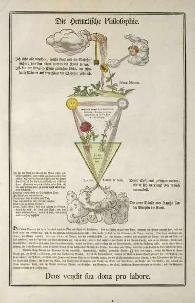 Alchemical Symbolism The 'Hermetic philosophy' figure from Geheime Figuren der Rosenkreuzer. Back to alchemical symbolism index The Geheime Figuren der Rosenkreuzer, aus dem 16ten und 17ten Jahrhundert is a book printed in 1785-88 that draws on various alchemical and mystical eengravings and drawings in earlier manuscripts. One of the images shows and emblem of hermetic philosophy.