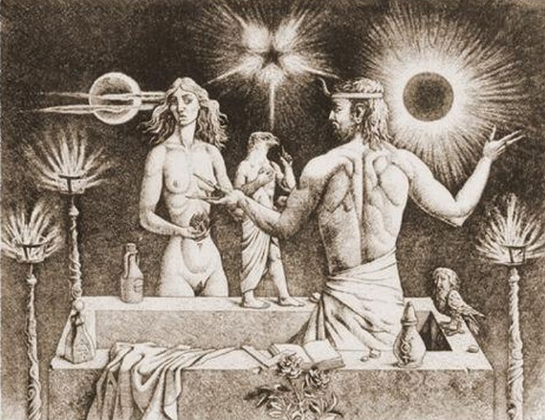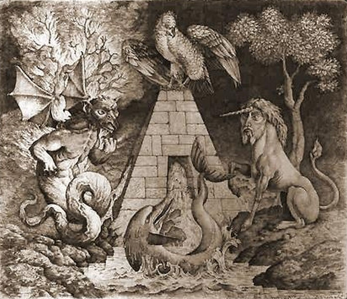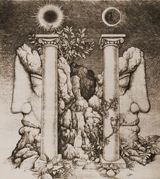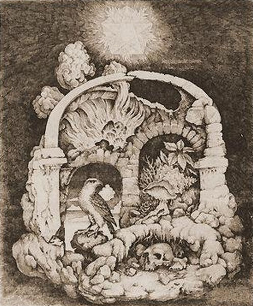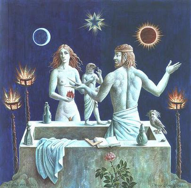 Peter_Proksch is one of the second generation of the Vienna Fantastic Realist movement which grew up around Ernst Fuchs in the 1960's. Proksch was extremely well studied in mythology and the emblematic tradition.