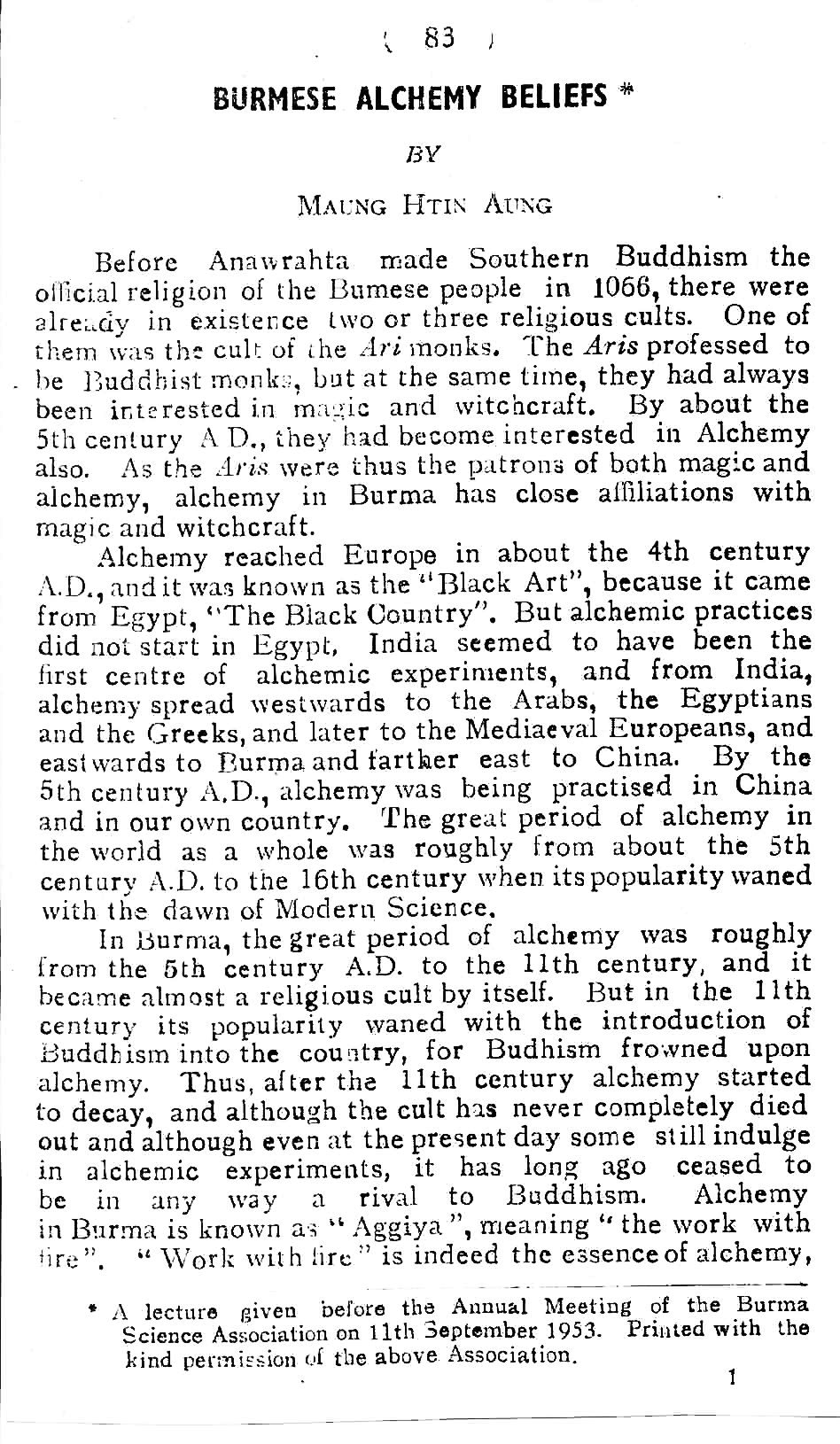 A lecture given before the Annual Meeting of the Burma Science Association on 11th September 1953. He had a doctorate from Oxford University.
