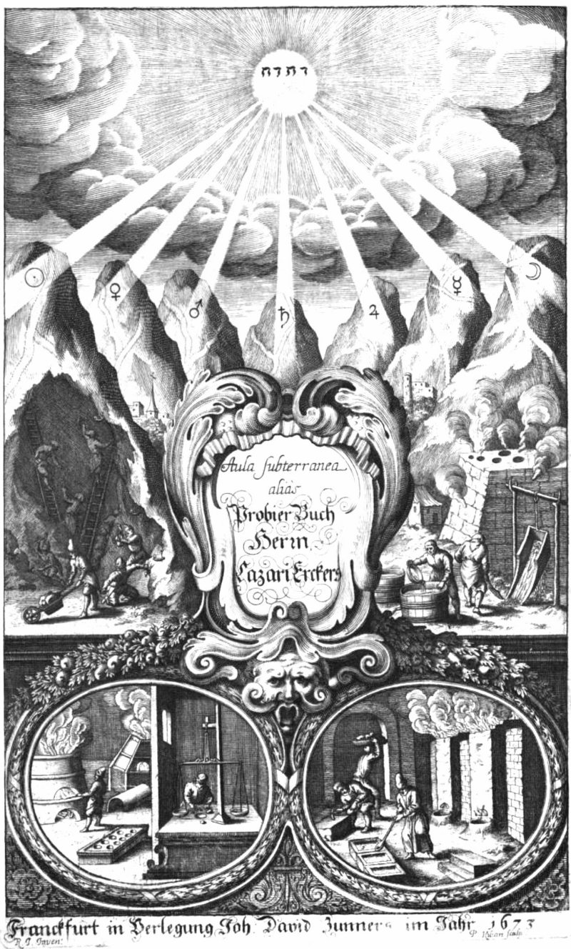 Lazarus Ercker. Aula subterranea domina dominatorum subdita subditorum. Das ist: untererdische Hofhaltung... Oder gründliche Beschreibung der jenigen Sachen, so in der Tieffe der Erden wachsen. Frankfurt, 1673.
