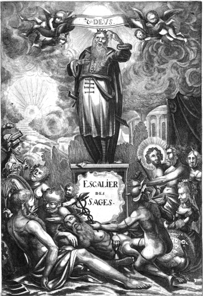 Emblematic Frontispieces Barend Coenders van Helpen. Thresor de la philosophie des anciens où l'on conduit le lecteur par degrez à la connoissance de tous les metaux et mineraux et de la manière de les travailler et de s'en servir, pour arriver en fin à la perfection du grand oeuvre. En forme de dialogues... Cologne: chez Claude le Jeune, 1693. Back to emblems page