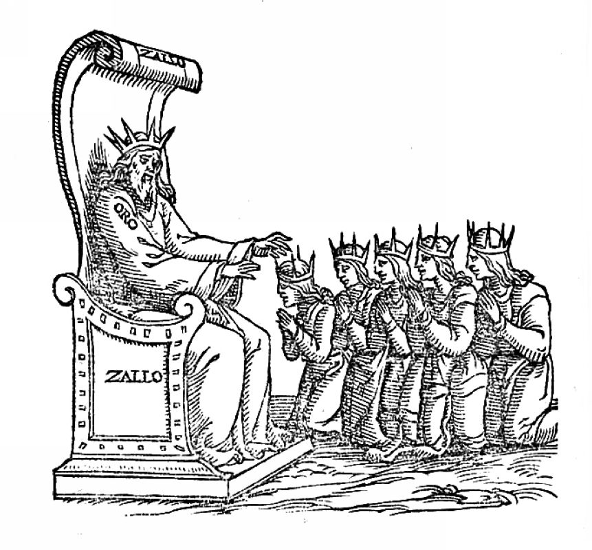 Woodcuts (Allegory of the King) from Lacinius (Petrus Bonus) 1546.