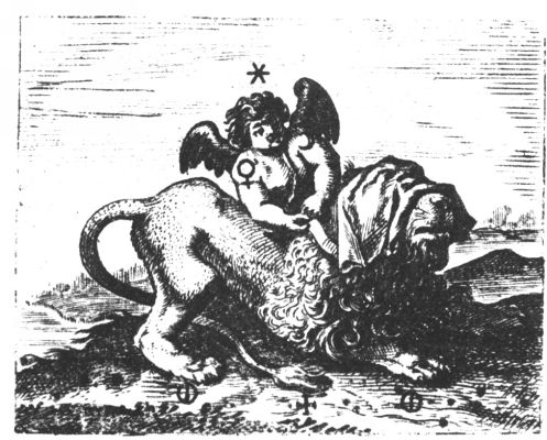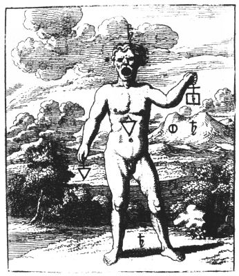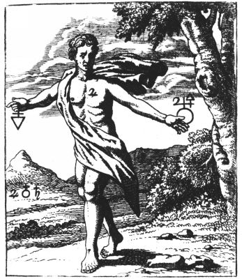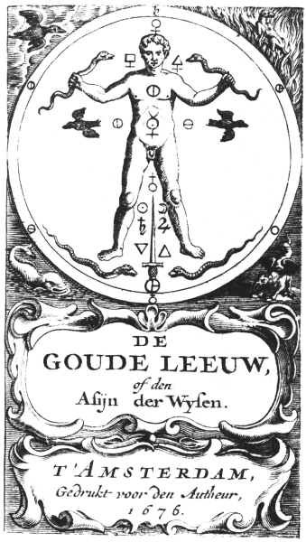 Engravings from Goossen van Vreeswyk, 1675. De Goude Leeuw, of den Asijn der Wysen. Waer in ontallyke heerlyke Konsten en nutte Verborgentheden ontdekt worden: als de Anima uit alle Metalen en Mineralen te trekken; vele ongemeene Medicynen, Schilder-Gout, Brandewynen uit Koorn sonder viese smaeck, uitstekend Blancketsel, kostelyke Gesteenten, te maken. Alles met eigen handen gewrocht, en met vele kopere platen aen den dach gegeven, door Goosen van Vreeswyk, Berg-meester. Jansson, Amsterdam, 1675. These images were taken from a well known Dutch emblem book of Jacob Cats which had gone through many editions before van Vreeswyk found these in the edition of 1659 printed in Dordrecht. The printer of the van Vreeswyk books, must have obtained the original engraved plates and added the graphic symbols for alchemical substances. Back to Emblems in Printed books Back to Emblems in 17th Century Printed books ![]()