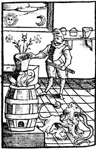 Woodcuts of Basil Valentine's Twelve Keys 1612. Tractat von dem grossen Stein der Uhralten, daran so viel tausendt Meister anfangs der Welt hero gemacht haben... I. Nebenst seiner selbst eigenen klaren Repetition und kurtzen Wiederholung... II. De microcosmo, oder der kleinen Welt des Menschen. III. Von der grossen Heimligkeit der Welt... IV. Von der Wissenschafft und verborgenen Geheimnüssen der sieben Planeten. Den filiis doctrinae zu Guten publiciret, und jetzo gantz new... ans liecht bracht... durch Johann: Thölden, Hessum. Apel, Leipzig, 1612. Back to Emblems in Printed books Back to Emblems in 17th Century Printed books ![]()