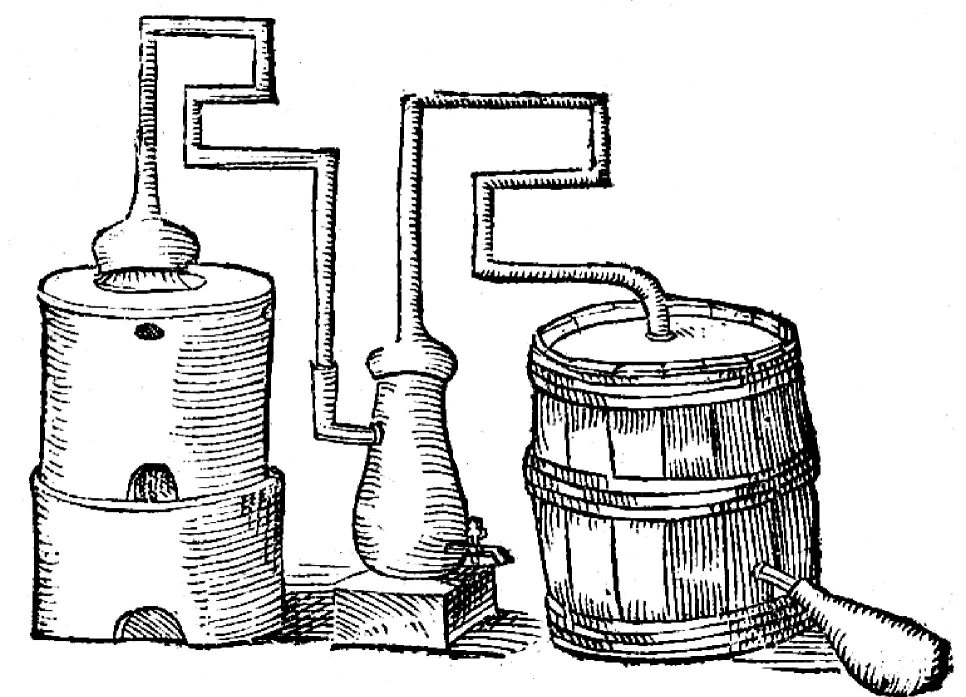 17th Century alchemical equipment Andreas Libavius (c.1555-1616) Alchymistische Practic: Das ist, von künstlicher Zubereytung der vornembsten Chymischen Medicinen: In zweyen Tractätlein klärlich entdecket: Deren das Erste, von destillirten Wassern, Öhlen, Saltzen, Extracten, quintis essentiis, acquis vitae, floribus, balsamis, etc. Frankfurt, 1603. Back to apparatus page