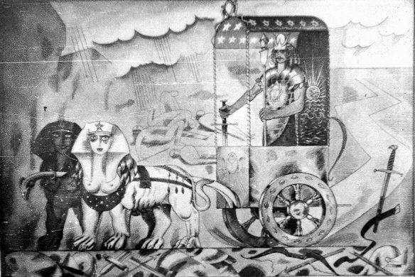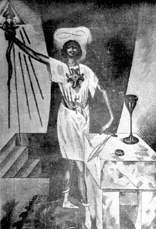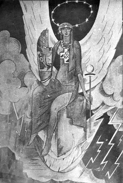 Masjutin attended lectures by Vladimir Shmakov (the author of a classic work on tarot in Russian) sometime around 1916 and as a result of this created a series of tarot paintings. Some commentators also refer to these designs as being coloured etchings printed as an edition. It is clear they were coloured images, whether paintings or prints, but no coloured scans seem to be available. It appears the originals are in the collection of Victor Masyutin Olsufyeva.