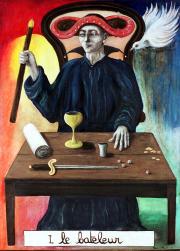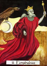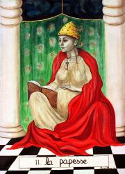 ![]() Marie-Claude Purro, a self-taught artist, was born on in 1962 in Fribourg, Switzerland. From 1993 to 1994, she lived in the small town of Praia de Mira, Portugal where she painted the 22 major arcanes of the Tarot. She says: "I studied and understood each arcane before painting it. This is how I found treasures of symbolisms about everyone's daily life, experiences, unhappiness, happiness, fears, power, spirituality; every day, one or more cards, 'appeared' to me according to what I was about to say or do. Each of those 22 cards corresponds to a different feeling, a highly enriching experience." 22 Major arcana deck. Card size 4.2 by 3 inches (105 by 75mm). Signed and numbered by the artist. Edition fully sold out. ![]()