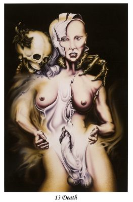 This tarot was created by the well respected Austrian artist René Marcel Rivière originally as a series of large highly detailed pencil drawings. He later produced a series of oil paintings closely following the drawings with the same depth of detail. René Marcel Rivière has had a large number of exhibitions in Austria, the US and Germany. His Erotic Tarot concerns itself with that part of human life, which determines destiny in the most fundamental way: Eros, love. It is in this field that humans, entwined with each other, like the pentagram of golden bodies on the reverse side of the cards, have always felt the greatest need to interrogate oracles. In an intense and sensitive manner, Rivière let his artistry take effect within the realm of mysterious encipherment and this has resulted in a riveting, graphic representations of mental processes, enabling a better grasp of ancient mysticism in our times. His imagery is extremely powerful, surreal and inventive. One can look at one of his images for a considerable period of time and still find one has not noted all the details. For this limited edition the cards are printed as large as was possible in order to do the artwork justice. There are two decks included in the box, the original black and white pencil drawings and the set of coloured images. Available now ! Two tarots of 22 cards. The retail price is £80 ($100).