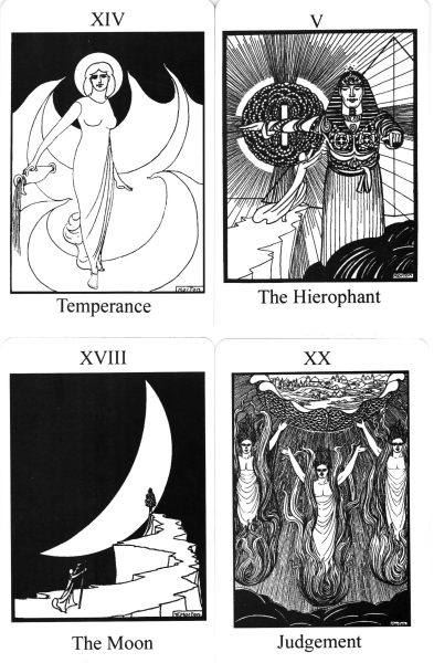 William Thomas Horton (1864-1919) was an artist and mystic, friend of W. B. Yeats, part of the milleau of the Golden Dawn and the various esoteric groups existing in the first decades of the 20th Century. He created many line drawn illustrations for books. A few years ago Koretaka Eguchi was drawn to Horton's illustrations and began collecting books he had illustrated and trying to develop interest in this neglected artist. One day when pondering these, Koretaka Eguchi realised that, as many of these illustrations had imagery that paralleled conventional tarot, it would be relatively easy and not at all artificial to construct a W. T. Horton Tarot, indeed the images fitted the tarot archetypes without requiring reshaping or collaging. Initially, he made these available as images on his web site, but these have now been realised as an actual set of printed cards for the Art Tarot Series.