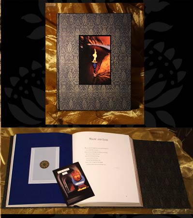 Gateways of the Divineby Colette An illuminated manuscript for the modern age. Gateways of the Divine is a visionary and poetic initiation into the realms of light and shadow. This exquisite artist's edition depicts a mythic journey of awakening through 44 Gateway cards; each Gateway is then illuminated by an inspiring collection of poetry and writings from the world's great mystical traditions. Featuring Rumi, Kabir, Tagore, Rilke, as well as the modern poets David Whyte, Pablo Neruda and Octavio Paz, Gateways of the Divine offers timeless wisdom on the path to wholeness. A lifetime gift of beauty and revelation. Gateways of the Divine is available in a signed and numbered Limited Edition of 1000 copies. This stunning case bound book features a 6-color cover, a double spine with a fold-out flap, a snap closure, 133 tip-ins, and a custom box with gold lettering. Details: 326 pages, with over 250 passages of poetry and mystical writings / 44 - 4x6" 4-color laminated cards in vellum pouches / Dimensions: 12x9x2 1/2"/ Weight: 7 lbs. Price: Nos. 1-499 - $260 (about 50 copies left) Nos. 500- 1000 - $500 each Shipping to the US is $25 for Priority Mail. International shipping is approximately $50 per book. - Visa, Master Card and personal checks accepted About the Artist and Publisher Colette has dedicated her life to the path of healing artistry and service. Colette is a visionary artist and designer, a performer of mystical poetry, and the creator of Gateways of the Divine. Created over the course of 10 years, this contemporary illuminated manuscript is being widely used as a tool of transformation by individuals and therapists internationally. Colette embodies the wisdom of Gateways of the Divine by offering ceremonial presentations which include spoken poetry, sacred imagery and dance as a means of revelation and healing. For more information, visit www.gatewaysofthedivine.com To order: 888.434.1154 / Colette@gatewaysofthedivine.com |