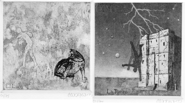 Catalina Cabrera produced this suite of 22 etchings/aquatints during a one year artist residency in Caracas, Venezuela, October 1999 through October 2000. The prints were exhibited at the Museo de la Estampa y del Diseño Carlos Cruz-Diez in Caracas, Venezuela, and again at the Biblioteca Pública Piloto para América Latina, Medellín, Columbia.