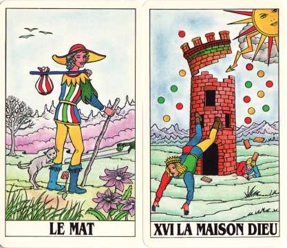 One of two decks in similar styles issued by Editions du Lezard, probably in the 1980s. The other was by J.R. Kahn.