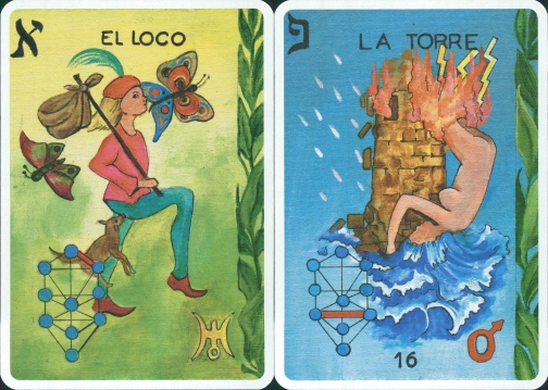 Each card bears an image of the Kabbalistic Tree of Life with the path associated with the arcana marked in red.
