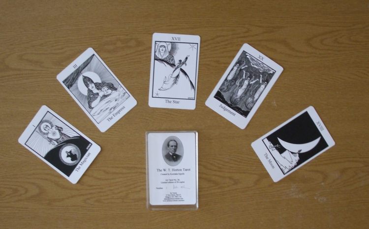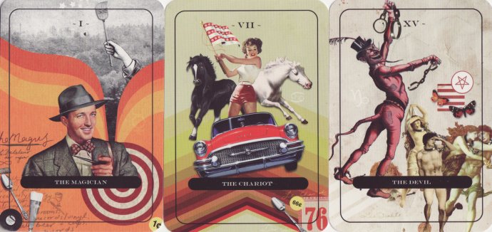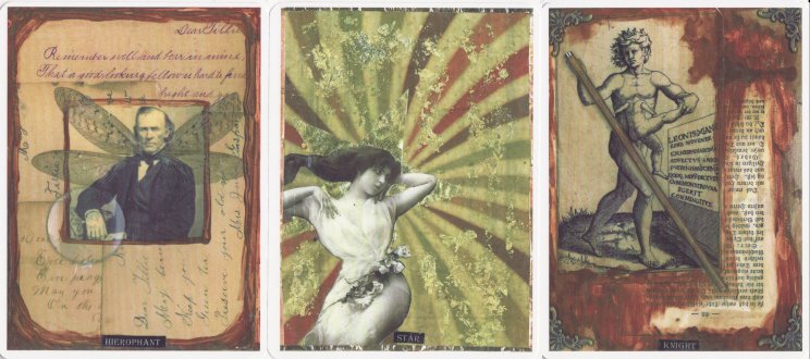 3 November 2010 Amy von Harrington is a New York based artist who works in a variety of media including collage. She has just created a full tarot deck of 78 collaged cards issued as a limited edition of 40 copies. Her style is funny, irreverent, playful, and in places sexually explicit. Her cards were sold at the Capricious gallery in Brooklyn. There is an interview about how she created her tarot to be seen here.