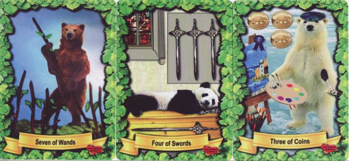 She spend most of the latter part of her life in Mexico where she devoted her time to painting. She is regrettably almost unknown but her work is engaging and delightful. I have devoted part of the tenth lesson in my study course on surrealism to her work. This is on the Exiles in Mexico - Leonora Carrington, Remedios Varo and Bridget Tichenor and can be seen on Youtube. Study course on Surrealism Lesson 10 31 December 2014 I thought pandas were from China not Japan. But one does not think factually when designing a tarot deck. So it should not be too surprising that this Iyapanda Tarot was recently issued in Japan. Japanese pandas seem to be rather slim.