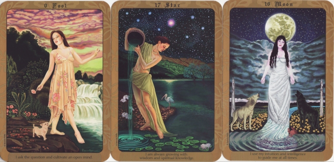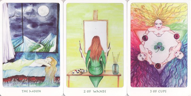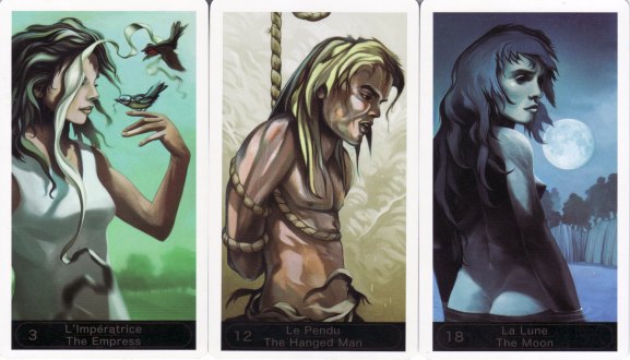 29 June 2014 One of the recent issues of US Games is the Chrysalis Tarot. They certainly know how to find good artists and let them express their vision freely. Here we have some very detailed paintings into which are woven various elements and symbols. The Moon card is truly a tour de force.