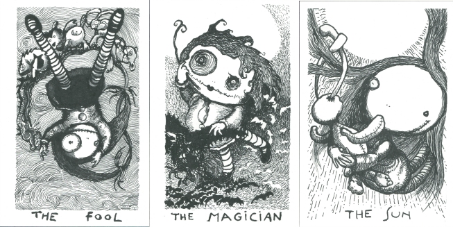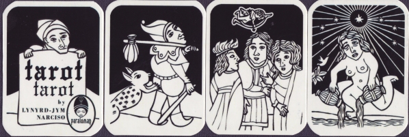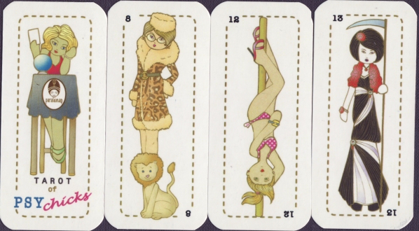 23 December 2010 When you buy a tarot from the Philippine artist Lynyrd Narciso, you get a little tarot thrown in for free. With his recent Tarot Rikit he excelled himself by enclosing two free tarots. These are in miniature format - one in colour Tarot of PSY Chicks and the other in black and white. These are also in limited editions. It will be best to buy copies quickly as there won't be many left shortly.