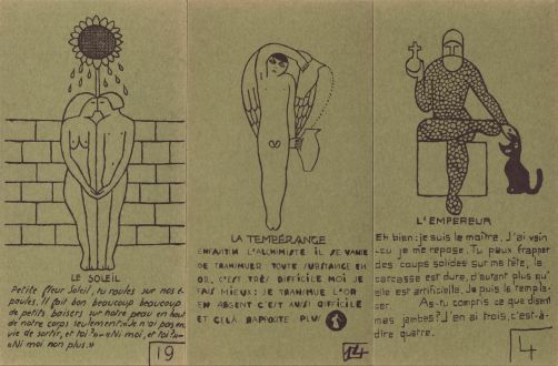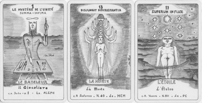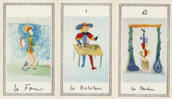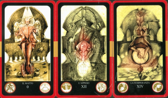 3 September 2010 Emilo Ortu Lieto is an Italian artist who has over the last 5 years or so produced a number of tarot decks in small editions of only 30 copies. I already have his Tarocchi Metafisici, Tarocchi Gay Orsi and Tarocchi Sardi. His latest deck the Tarocchi Surrealisti arrived this morning. Emilo Ortu Lieto is a Set and Costume designer for stage and screen, and has worked on many well known theatrical productions and films. www.perunteatroteatrale.com/index.html You can buy a copy probably for 100 Euros or so from an Italian dealer who distributes his work. I am sure these will appreciate in value as his art becomes recognised more widely. They will not be around long as the edition is limited to only 30 copies.
