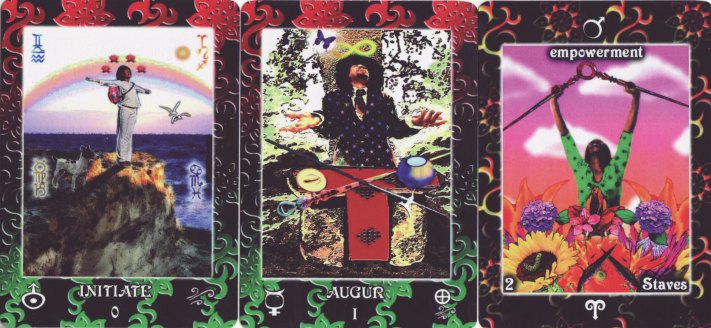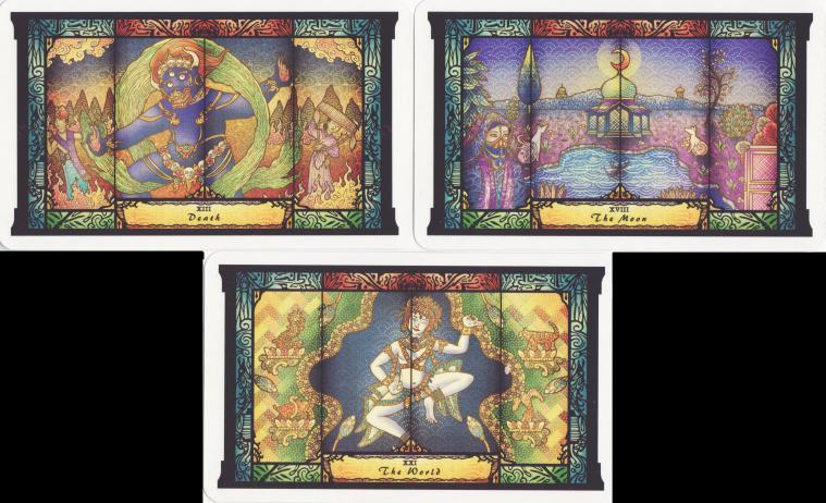 8 April 2011 Lynyrd Narciso is a prolific creator of tarot decks based in the Philippines. He is always exploring new styles, new themes and ways of expressing tarot imagery. I have twelve of his decks including the recently issued Tarot of the Curious East. He has produced this in an edition limited to 50 copies. For this deck he had adopted the unfamiliar landscape format, which allows him to explore the imagery in a new way. One day his limited edition decks will be very collectable. This deck appears only to be available through the Tarot Garden store.