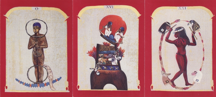 19 October 2010 I recently obtained an Egyptian tarot previously unknown to me. This was produced by Editions Rå in 1985. That is the sum total of my knowledge about this deck. I hope that some of my fellow collectors might be able to provide me with some further information.