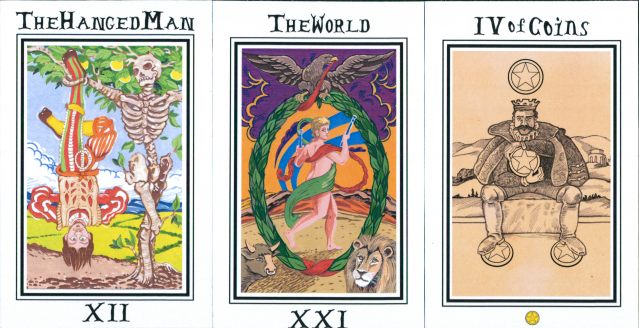30 September 2010 I have managed to plug another hole in my collection, the Omaho Old Market Tarot from 1988, which had eluded me. A couple of copies had surfaced over the last five or six years on Ebay but I had not managed to win the auctions. The artist Samuel Mercer worked in watercolour without using containing pen or pencil lines. This gives a rather nice effect and style to the artwork. He seems to have used the Oswald Wirth deck as his primary inspiration.