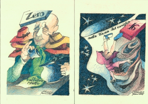 30 December 2013 Today I received a copy of the Fantarocco by Franco Anichini, which I bought through one of my Italian contacts. These are detailed drawings created by Franco Anichini, painter and engraver, and former teacher of Design and Art History at the Liceo Scientifico in Viareggio. The 78 card deck was issued to raise funds for the Rest Home of the Sacred Heart in Viageggio.