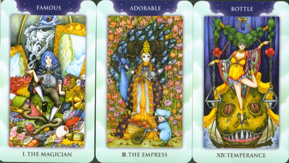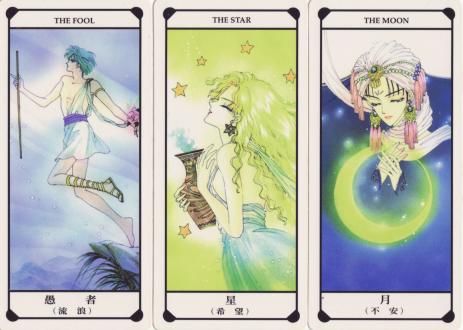 1 September 2010 I recently was able to buy a copy of an influential 1990's Taiwanese tarot, the Fairy Tarot of Yo Su-Lan (1998). What one might call manga in soft focus.