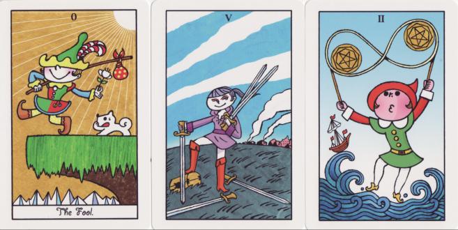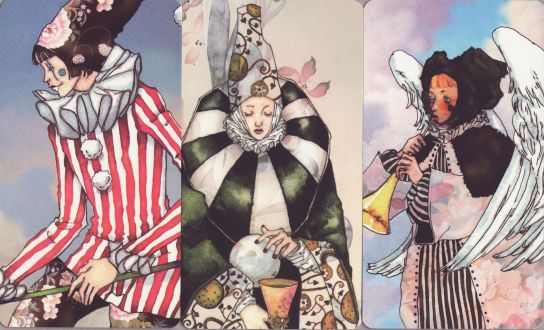17 January 2011 The Plumoi Tarot is a cut out deck printed on thick card bound into the January, 2011 issue of Koiunreki magazine. The foreground figures in thick black line really pop out from the coloured backgrounds. You can see the deck on the animated page www.plumoi.jp/fc/omiyage/tarot