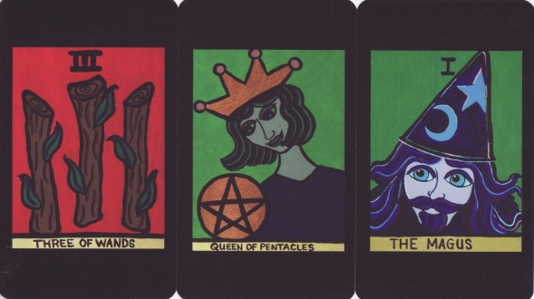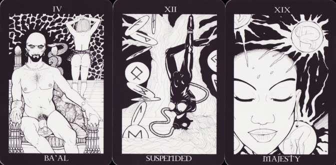 31 December 2013 The Kundalini Tarot is based on a series of pen and pencil drawings by Adana Washington. She has published this though Gamecrafter. We are all now familiar with the publish-on-demand system for books which is now used by many publishers. Gamecrafter is doing this for game cards, thus providing an easy way for an artist to print and sell their tarot designs without requiring an investment of capital, or long hours laminating, cutting up cards and making up boxes. I have bought some of the Gamecrafter productions before and they appear to be of good quality, so I went ahead and placed an order for a number of items from them which should arrive in a week or so. Adana Washington is now working on the designs for a new tarot which I expect we will see published next year.