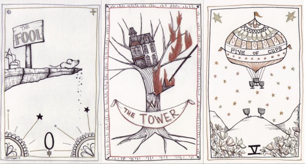 28 July 2014 The Southside Tea Room is a well known venue located in Brisbane, Australia. Southside Tea Room teamed up with local letterpress printer Little Peach Co. and engaged twenty two local, national and international artists to collectively put their unique stamp onto a deck of tarot cards. They must have given the artists a clear idea of what they expected, as unlike many other such collective tarots, this one has a degree of coherence. You can buy it from their Etsy shop.