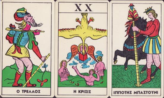 16 October 2010 Yesterday I had a visit from one of the major figures in tarot, Mary Greer. This visit was arranged by another well known promoter of all things tarot, Marcus Katz. It was really interesting to have a discussion about the state of tarot today. I resisted the impulse to overload my visitors by merely pressing them to look at tarot deck after tarot deck - that requires many many hours - and instead we had an exchange of views and information about what is going on in the world of tarot, on the various forums, conferences and events, as well as catching up on news about individual tarot artists and creators. Before they left, I could not resist letting them glance through some of my collection, if only to give a sense of the sheer mass of diverse material that constitutes the artwork of modern tarot. Marcus, who has visited me a few times, never loses his enthusiasm and excitement at seeing a tarot previously unknown to him. 15 October 2010 Over the last week I have been working on my Tarot Art database and so I have not had time to keep up the weblog. I think this database will, in the longer term, be important for the study of the artwork of modern tarot. Other people have occasionally begun similar projects but been unable to complete them. Also many of these attempts have been made by scouring the Internet for information, an unreliable method. The entries in my database are not such second-hand information. Each item is in my collection and my description of each tarot is made with the deck, book and packaging at hand. My methodology is also consistent as it is not drawn from various people's opinions. Also my focus is entirely on the art in the tarot, and not on the divinatory, esoteric or philosophical aspects. The database currently has 500 items in it, and I have focussed on the Far Eastern tarots to begin with, the Japanese, Taiwanese, Chinese and Korean. I will gradually work through it country by country until all the over 2100 items in my collection have been added. It will take some time ! Probably up to a year. 8 October 2010 I have now uploaded the weekly update to the database with another 65 items. I have now added about 90% of my Japanese items and will add the remaining over the next month or so. www.alchemywebsite.com/tarot/database/tarot0.html I will eventually make it possible for users to browse just the tarots of individual countries, and will implement this for the Japanese items within the next few weeks. Initially the database will be based on my own collection, as I have the cards physically at hand. Once I have entered all of my collection, say in a year or so, then I will ask fellow collectors to provide me with details of tarots I do not have, so that the database can become more comprehensive. Hopefully, it will become an important resource on the artwork of modern tarot. Thanks again to the many fellow enthusiasts who have corrected some of the errors and given me additional information to complete an entry. There is much more to do, but a substantial beginning has now been made with over 400 items catalogued. 7 October 2010 Much of this week I have devoted to creating entries in my database of tarot. I am, to a great extent focussing this week on the Japanese items im my collection. Each entry requires some research and writing up some descriptive information. My database deals primarily with the artwork. I will be updating the entries online every Friday. This week I should have added over 50 items. It would be great if I could manage to keep to this target every week but I doubt I will be able to allocate the time, as I have to make a living. There are currently 400 items in the database and if I kept to the present rate I could probably complete it within six months. It will be a substantial resource for anyone studying tarot art. I intend to work on individual countries at a time, and after I have completed the Japanese entires I will turn to the Taiwanese and Chinese deecks. 5 October 2010 Modern Tarot does not have a long history. When we use the term an "early tarot" in the context of modern tarot, then we mean one printed in the 1960s. I have now obtained one of these rarities, a copy of the Dimitri Papavasiliu Tarot published in Athens in 1969. This 78 card deck comes in a hardbound book, contained in pockets at the back. It is a variation on the Tarot of Marseilles.