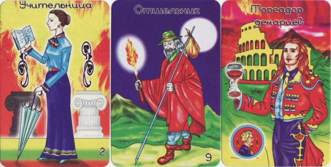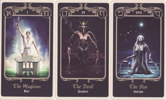 I have over forty Russian tarots so I was very pleased to receive another through the courtesy of a fellow tarot enthusiast in Moscow. This is the Tarot of the Twelve Rays by Isset Kotelnikova and Max Kim in 2010. It is a full 78 card deck with standard pip cards without emblems, and quite conventional Court cards. The artwork for the Majors is rather well done, with some interesting colour and light effects, and appear to be digitally realised rather than painted with pigments. The figures seem rather cold and remote. Isset Kotelnikova runs a tarot school, the Gates of Isis, based on the system of Papus. You can see more cards on their web site taro.isset.ru