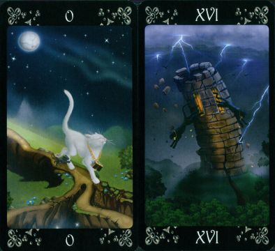 6 July 2014 Over this weekend I decided it was time to organise the many illustrations I have collected of as yet unpublished tarot decks. These I had gathered over the last decade from various browsing sessions and had been placed in all variety of folders on my system. So I have begun systematically reorganising them into named folders. There are now just under 400 of these with more still hiding in obscure folders. It does take some time to organise these, so this will have to wait till I have another block of free time. Some were consolidated into zip, pdf or doc files so it will take some more weekends to extract these into jpg files. I have put them into my existing ThumbsPlus database of tarot card images. This I have been building since the Spring of last year, when I began scanning in all my tarot decks at 600 dpi resolution. This currently has over 1600 published decks entered. It takes an enormous amount of time to scan in cards at high resolution. I use this for my research and, in time, when all the material I have is entered, I will have a virtual library of modern tarot art. At the moment it amounts to 520 gigabyes so it is quite a challenge to backup. At one time I did have hopes that my physical collection of tarot art could be donated to a library and thus provide a resource for future scholars, but this was impossible as museums and libraries wanted an endowment of around one hundred thousand UK pounds ($170,000) in order to accept the physical collection. I, of course, do not have access to those kinds of funds. The virtual collection of images and my descriptive database will be more easily housed in some research library without needing a large endowment. There are many tarot collectors, but I am one of the very few amongst them that want to collect tarot in order to document the phenomenon of tarot art. At the moment it is completely marginalised and ignored by art historians, but in the decades to come the format of tarot art will be appreciated by scholars and become part of the discourse of art history. I hope that my virtual library built upon my physical collection, will be useful to future scholars and researchers. 5 July 2014 Now it is 'Mystical' cats that have found their way into a tarot deck. Black, White, Medieval even Bleu I can understand, but 'Mystical' is surely a difficult concept for a cat to express. Anyway these are rather fine pen and watercolour paintings. 'Strength' is rather cute with its inversion of reality with 'Sky Tom' perhaps closer to feline verisimilitude. The 'Four of Sea' appears to raid Lewis Carroll for the Lobster Quadrille which has gone entirely over my rational head, but well it is a 'Mystical' cat tarot so anything goes I suppose. This delightfully painted tarot is one of Llewellyns recent output.