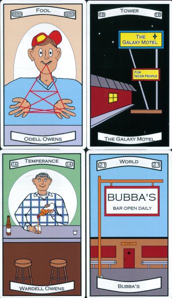 27 November 2015 Sordid Lives is an American television series created, written, and directed by Del Shores and broadcast in 2008-9. It was essentially a prequel to the 2000 film Sordid Lives, also by Shores, self-described as a "Black comedy about white trash". A publicity notice states "The show is set in small town Texas and centers on the Ingram family. The story of Bible-thumping Baptists, beer-swilling bar trash and everyone in between in a small Texas town, contrasted with the appearance-driven world of Hollywood and the hysterical comedy and tender poignancy that come from learning to be yourself and love the family you have instead of the family you want". I have never seen this show, nor would I want to, but it seems to have made sufficient impact to have inspired this tribute deck. Set of 22 Majors plus 4 additional cards.