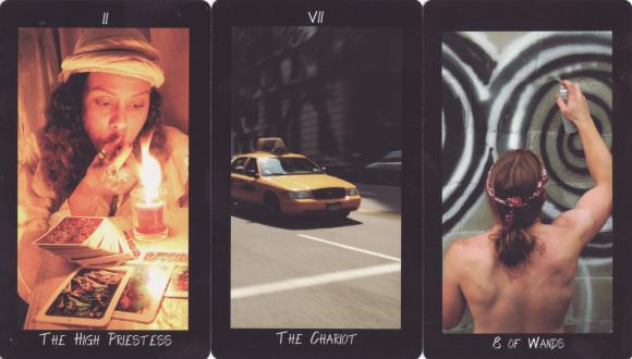 2 September 2010 The Tarot of the Boroughs: An Urban, Contemporary deck set in New York City is exactly what it says on the packet. Nearly all the posed photographs were taken by George Cortney, and he worked with Courtney Weber on the depiction of the ideas. I rather like the self-referential idea where the High Priestess is examining a tarot spread. The full deck of 78 cards can be obtained from www.tarotoftheboroughs.com