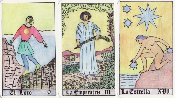 6 January 2014 The Argentinian artist Maria Bertone exhibited her tarot paintings at the Maria Bonita Gallery in Buenos Aires in January 2013. These were created in acrylic on wood about 35x 25 cm. These designs were then issued as a limited edition tarot deck of only 50 copies. The designs are simple but very good quality. These will be impossible to find shortly.