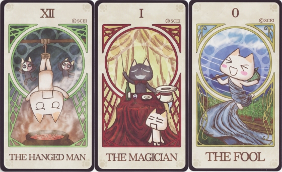 16 July 2010 It is not often that one gets two cat tarots in one days post. The Toro Inoue Tarot are rather well produced cards published by Sony Computer Entertainment Inc. Toro Inoue is also known as the Sony cat, as this cat who wishes to be human, is Sony's mascot in Japan. It first appeared in July 1999 as the main character in the video game Doko Demo Issyo. Now, after over ten years this cat appears in a tarot deck. If I have time I will post up details about the other cat tarot tomorrow.