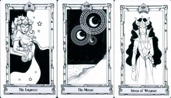 9 July 2014 Last week I discovered a tarot that was produced in 2010 in the UK as a project towards a BA (Hons) Fashion Illustration at the London College of Fashion. The artist is Yeo Park and the designs are in pen and brushed ink and reflect the style of fashion illustrations. The artist produced a small batch, beautifully presented in a lidded box, and happily for collectors still has a small number of these left for sale. You can buy these direct from the artist at ParkYeo-Jung ylangylang47@hotmail.com