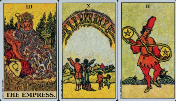 6 July 2010 The Petrak Tarot is wonderfully painted in soft interpenetrating layers of colour by Austrian artist Petra Reiter. It is printed by Paitnik. The imgery is very creative with some ideas I have not seen before. The Hanged Man, for example is shown emerging upside down from a chrysalis structure hanging from a tree, much like a butterfly. It is not easy to source this tarot, but you should be able to find them through Roderick Somerville. Petra Reiter has a website at www.petrak.at where you can see some of her other paintings.