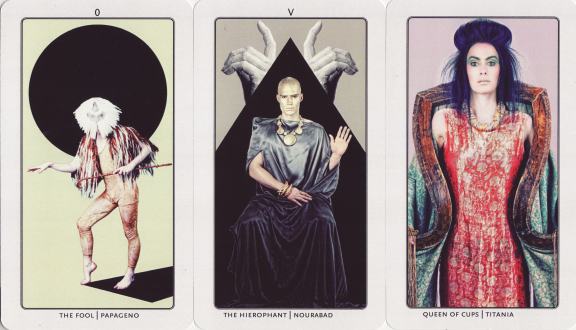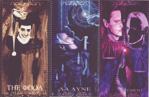 26 August 2010 The strangely named Vitas : Personal Idol Diary Tarot seems even more weird when one realises that though produced in China it has the card titles in Greek! But that is not all for although the alphabet is Greek, these transliterate into either French or English. Is this merely a muddle or is there some subtle message here? We will probbaly never know. The imagery is rather good, being computer created collage, though the densely textured backgrounds fight against the foreground images and often prevent them standing out. There are some fine images here and though quite stylish the cards are immediately recognisable from their content.