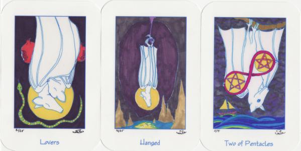 27 September 2010 Apparently the idea for the new deck from Beth Seilonen arose from her being invited to the Bay Area Tarot Symposium (BATS) in August 2010. Thus it was produced in celebration of the BATS. So we have the White Bat Tarot in an edition limited to 25 copies. The imagery of the minors is subtly based on the Pamela Colman Smith minors for the Rider-Waite deck.