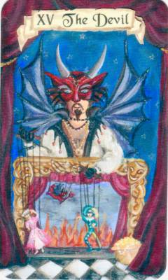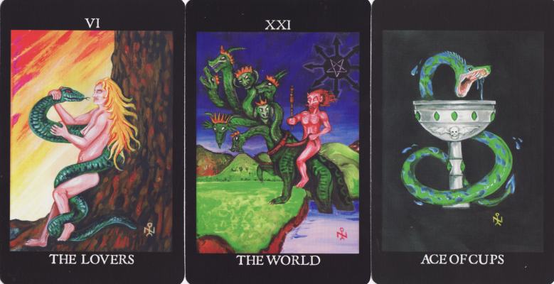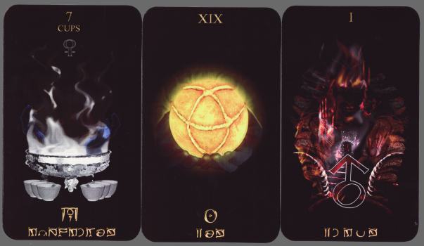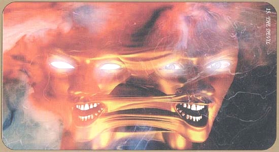 10th Aug 2007 Yesterday and today I have spent some time negotiating with an artist about a really fine deck that they were not able to get published through the usual mass market publishers. This morning I made up some sample cards and sent them off to the artist. Hopefully, we will be able to make an agreement on publishing. It saddens me that so many fine tarot decks have been designed by accomplished artists and yet do not find a publisher. I am happy to publish their work, but my resources are limited and I have to be realistic about prices. Sadly it appears there are no wealthy people willing to sponsor the publication of such wonderful artwork, so it is left to people like myself to make the best of things. I have four decks in active preparation at the moment, which means I will have published 17 tarot decks in about 18th months. On the negative side, I had a series of emails from a 'gentleman' wanting to buy cheap "seconds" of my tarot decks. I told him I did not issue low quality copies. He then went on to say that he believed that sometimes the "seconds" become collectors items. I must say I got rather annoyed at his attitude - wanting to buy cheap copies in the hope that he would make money from these. It such very hard work producing these tarots, both on the part of the artist and on myself as printer/publisher - so it is rather galling that someone should seek to exploit things in this way. When I pointed out that I valued my work and the work of the artists whose cards I publish, this 'gentleman' got rather abusive saying that I was arrogant and that arrogance was incorporated into my work. I just didn't need that sort of start to my day. People can be so mean. 7th Aug 2007 I spent most of today setting up the artwork for the next two art tarots I am to publish in my series. I printed a copy of these out, and made up some sample cards, which I will send to the artist for their final approval. Hopefully, if nothing gets in the way, I should be able to publish these in September. Much of the last few months I have spent working on my alchemy exhibition at the Edinburgh Festival. If you want a bit of amusement have a look at this page www.alchemywebsite.com/exhibition2007.html 6th Aug 2007 There have been a quite a few 'dark' magical tarots issued recently - the Sinister, the Abysmal and the Bestian immediately come to mind. Now we have the Luciferian Tarot from the USA. The creator of this deck, Michael W. Ford, seems to hope to sell this widely, as he has chosen to issue a full 78 card deck at a modest price. The artwork was conceived by Ford but painted by Nico Claux, whose previous output seems to be oriented around portraits of serial killers. The Majors are full paintings, as are the Courts, but the Pips are a collage of paintings and sections of woodcuts, magical sigils and related material. Ford presents the deck as exploring the impact of the Adversary (one name of whom will be 'Lucifer') throughout history, and thus the artwork on the majors draws on some medieval paintings and early woodcuts. Thus we have some references to the many woodcuts series of the Apocalypse, images probably from the Visions of Tundal and so on. The artwork is not particularly polished, with the modelling a bit clumsy in places, but one can see this as part of the deck's style. The cards are quite large (5.5 x 3.5 inches - 140 x90 mm) and on a thin stock. At first glance, something seems to have gone wrong with the numbering of the cards 8, 12 and 13, but this may not be a misprint and could well be explained in the book you can buy in conjunction with the deck. It is not one of those excoriating and grim series of images, such as we find in the Savage Tarot, but the imagery is quite approachable and does not repel or offend. No doubt, committed Christians will disagree with me here ! Serpents, dragons, skulls and hellish flames are depicted throughout the deck which, of course, has black borders.