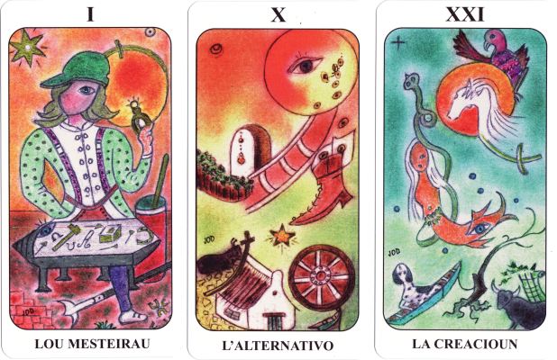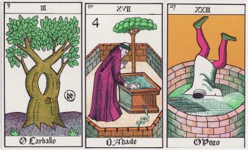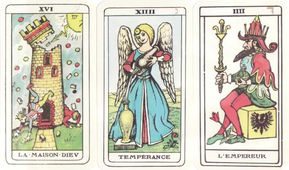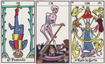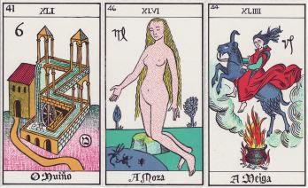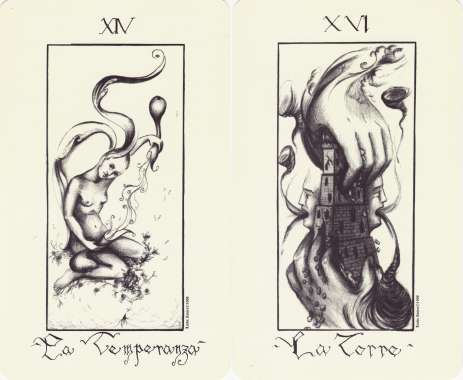 28th June 2007 Italians have a long established tradition of art tarocchi. Today I was told of a series of drawings of the tarot majors by the Italian artist Nicolo d'Alessandro which were printed in a book Disegnare non stanca. Tarocchi e altre figure Sellerio, 2002. ![]() ![]() The tarot museum in Riola near Bologna in Italy has in the past few days issued a number of new tarots. One of these is a Tarocchi Alchemici, which is the collective work of 22 individual artists. Another collaborative work, this time a 46 card deck (majors and court cards), is the InContro Tarocchi. Also issued at the same time is the Tarocchi di Connessione by the artist Jessica Angiulli. Here we have a majors only deck, where many of the cards are renamed, though the symbolism on the cards is entirely recognisably tarot. Thus The Magician - Creativity, Lovers - Relationship and Judgement - Conscience. 22nd June 2007 I have now received the artwork for the next item in my art tarot series, and also some provisional material for two other tarots. I will be rather busy over the next two months working on the exhibition of my alchemical artwork for the Embassy Gallery during the Edinburgh Festival, but once this is out of the way I should be able to make progress on some further tarots for my series. A number of artists have contacted me recently concerning the possibility of my being able to publish their work and I will do the best I can to make this happen. I have published thirteen decks in just over a year (my first tarots were issued in April 2006) and although the project does not make any money, it seems to be covering the costs, due to the small group of active tarot collectors who are supporting the work by buying copies of each deck. These are necessarily expensive, because of the production costs and the fact that I do give the artist a fair cut of the sales, but these are editions limited to 100 signed and numbered copies and will in time fetch a high price once the editions sell out. I noted an auction on Ebay recently where the value of an out of print deck (produced in an edition larger that 100) was established through the auction at £406 ($810), so it seems likely that the decks I produce will increase in value over the years ahead. On the basis of present sales, I would expect most of my decks to sell out over the period of two to three years. The first deck I produced the Alchemical Emblems Tarot now has only 25 copies left for sale. 16th June 2007 The Tarot Sarry was printed in 1977 at La Coruna in Spain, though the card titles and booklet are in Portuguese. The designs were by Ulises Sarry and are made to look as if they were drawn and coloured in the style of a Marseilles deck. There are 48 cards and only 16 or so directly link with the familiar tarot arcana. ![]() Some obviously follow the standard tarot arcana though they are not all numbered conventionally. ![]() Others are unique to this deck. Here we have cards named O Carballo, O Abade (the Abbot) and O Pozo. ![]() Some cards incorporate visual quotations. O Nuiño quotes the well known paradoxical waterfall from an Escher drawing. A Moza (the maiden) can be easily recognised as the Eve figure from the left panel of Hieronymous Bosch's painting 'The Garden of Earthly Delights' while A Meiga is taken from a 16th century woodcut of a witch on a ram jumping over a fire. 13th June 2007 I bought Le Jeu des Dames de Coeur on much the same basis as I did the Elizabeth deck. It is not a tarot deck as such but a French Tarock deck for playing the card game still popular in France. This means that though there are 22 trumps they do not necessarily incorporate the conventional tarot imagery.