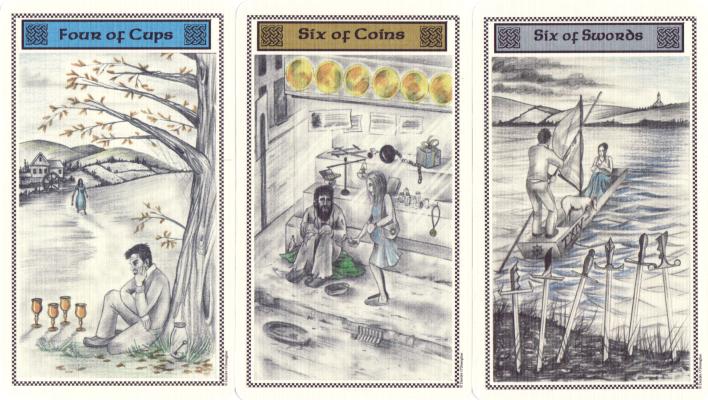 20th Sep 2007 The amount of time I have to put into printing, laminating and cutting out the cards for the Art Tarot series, has made me think of alternatives. Of course, it would be wonderful to have these done by a commercial printer, but this is economically unviable and just will not work finacially. I am going to experiment over the coming weeks with a new technique for printing cards and send some samples out to my customers for their appraisal. If it is acceptable to my customers, I will use this to produce some decks in future. 17th Sep 2007 This morning The Deirdre of the Sorrows Tarot Deck arrived. This was created by Deirdre O'Donaghue with the illustrator being Wayne McGuire. The artwork is in pencil, with areas being coloured with pencil also. This creates a soft subtle texture to the imagery, which is further emphasied by the card stock being a linen textured card. The deck has emblematic pips and to a great extent follows the Rider-Waite style. It could be seen as a Rider-Waite clone with a Celtic-Irish orientation. It has some nice subtle humourous touches.