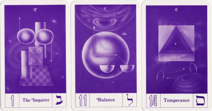 24th Oct 2007 One expects a Tarot of Hekate to be full of witches and cauldrons and strong goddess figures, but the Tarot of Hekate issued as black and white illustrations in the book by the Rev. Don Lewis, 2006, takes us on a different course. His tarot designs were made some twenty years ago when he did pen and ink artwork for a number of metaphysical magazines. When he made his drawings for the tarot he had hoped these would be published as a deck, but that did not work out and so now he decided to publish the designs for his Major Arcana in a little book. His Majors are extended, having 30 cards - the familiar twenty two tarot majors, plus eight extra cards Soul, Mind, Heart, Body, Time, Past, Future, Magic. The card art varies a bit in style but perhaps draws especially on eastern religious philosophies and the metaphysical and new age ideas popular in the 1970's.