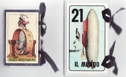 17th Sep 2007 Over the weekend I was able to print out the next tarot in my series. I now hope to begin the lamination today, which should take a few days. Hopefully I should have this ready by next week. It is a beautiful painted tarot. I do especially like tarots based on paintings. The new Tarot Collectors Forum www.tarotcollectors.com seems to be running well. It was intended to enable informed discussion by collectors about tarot and seems to have achieved this immediately. Through the postings I have learnt a great deal about some tarot decks and been informed of the sources for three tarots which I did not have and was immediately able to add them to my collection. 13th Sep 2007 Sometimes one takes a chance and buys an item on an Ebay auction not particularly well described or with poor quality pictures. After trying to make out whether the cards that came with a book were original or merely prints of a well known deck, I took a chance and have now found that I have a rather nice item in my hands. This is a French book by Marguerite de Surany, and Elisabeth de Ribes - Van der Kemp entitled Le 22 lames de Tarot, published in Paris in 1986. In the back of this book is an envelope containing the 22 major arcana, a version of the Wirth deck by Robert Bletz. It is a rather jolly reworking of the Wirth images, with subtle humourous elements. I particularly like the expressions Bletz has given to the faces of the characters, some scowl, some have quizzical smiles, others pout, and so on. This radical humourous modernising of the Wirth deck was taken even further by Sergio in his 1989 deck Tarocchi Ermetici. Le 22 lames de Tarot is a rather nice find, obscure and forgotten, with no mention in Kaplan.
