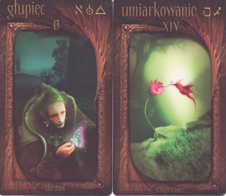 26th Sep 2007 The Maroon Tarot from Poland is now available and I received a copy today. This is based on the wonderfully detailed fantasy art of Tomasz Maronski. ![]() His tarot artwork is rather original. The way his Fool gazes at the luminous butterfly is quite delightful. Another original image is that of Temperance, as here a hummingbird is about to sip nectar from the flower. Sadly, the publisher found many difficulties put in her way by narrow-minded printers in Poland, whose Catholic orthodoxy made them suspicious of tarot as being 'devilish'. Luckily Maia was persistent and eventually found a brave printer, though it did delay publication a month or so. It is a Majors only deck, though they have plans to issue the Minors next year. It is well worth purchasing a copy direct from www.kartytarota.pl. 25th Sep 2007 Raymond Buckland's Romani Tarot was issued by Llewellyn in the USA in 2001. This proved rather popular and sold out its edition in a few years and as there are still many people wanting a copy the secondhand price is now quite high. In 2004 a Turkish edition was issued. This is a clone of the original having the same packaging (though printed in Turkish) as the original and includes the book by Buckland though translated into Turkish. I am not sure if it is an unauthorised copy as the book recognises Llewellyn, Buckland and the illustrator Lissanne Lake as the copyright holders. A few days ago I managed to obtain a copy of this Turkish version. The cards are printed a few percent larger than the original and the quality of the printing is much the same as the Llewellyn though with a more glossy varnish. The cards are, however, less well finished than the original, the corner rounding being badly implemented. The titles on the minors are in Turkish. I also have a copy of a Russian version of the Romani issued in Moscow in 2005. Here the cards are much smaller, and the images, rather then being borderless, are set within a flowery border, which is the same on all the cards. The titles on the minors are in Russian. This comes with a smaller format book translating Buckland's text into Russian. The cards are well printed, though in higher contrast than the original, by Rei Mundi in Belgium and surprisingly come in a rather oversized box. ![]() It is rather nice to have a complete set of these publications. 24th Sep 2007 Almost ten days of work, but I have finally been able to produce the latest tarot (number 15) in my Art Tarot Series. This is the wonderfully atmospheric and stylish Phantomwise Tarot by Erin J. McCauley. This morning I set up the website pages about this deck, and later today will post out a notice about this new tarot on my mailing list and hopefully begin to sell a few copies. As always, when one thing is completed, I find myself immediately turning to the next project. That will be a tarot entirely different in subject matter and art genre, but equally delightful and unique.