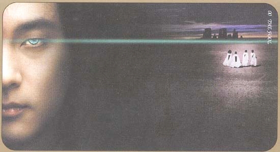 2nd July 2007 I have recently been able to buy a number of Korean tarots. Among these is the Struggling Tarot which was issued with a four volume audio CD compilation of the Korean techno rock musician Shin Hae-Chul. This is an expensive way to buy a tarot deck, but how else is one to acquire an item such as this? Judging by the titles of his songs and albums, Shin Hae-Chul is obviously well read. The cards seem to have been designed by Zun Sang-il who works under the title 'ZSG' but it is undocumented just how much contribution Shin Hae-Chul made to their designs. They incorporate photographs, paintings, parts of prints and computer modified collage. Interestingly, the oblong cards use both landscape and portrait format. The imagery is creative but adheres close to the standard tarot arcana. The Fool is interesting in that it shows the face of Shin Hae-Chul linked towards four robed figures walking towards the familiar stones of Stonehenge. The Devil provides a powerful image of a face being stretched and distorted into a devilish mask, while the Empress card, in standard portrait format, uses a painting of a female figure with eggshells above and coloured marbles beneath her. Some of these images may originally have been used in other contexts such as CD covers. With the cards, Zun Sang-il provides a short verse, the opening of which I paraphrase:- These small cards can be anything to you.