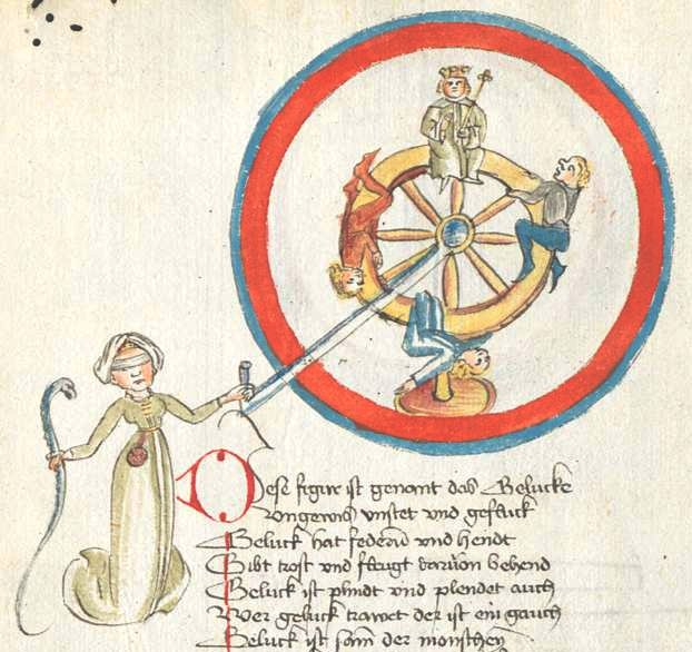 1st Oct 2007 Today one of my correspondents kindly informed me about this rather beautiful Wheel of Fortune from a 15th century German manuscript in the Staatsbibliothek in Munich, CMG 5185. Although not directly connected to the tarot, images such as this were part of the emblematic background out of which the tarot images emerged.